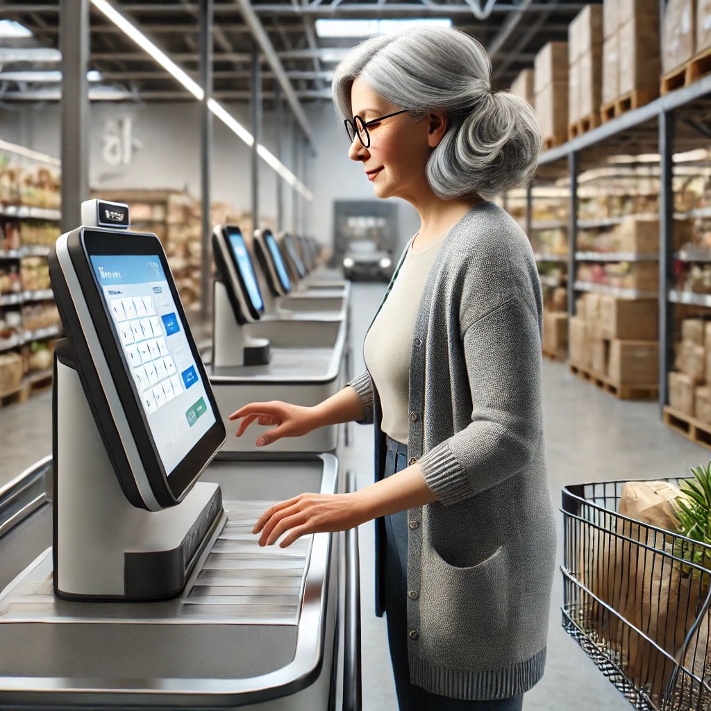 She blinked. Had she meant to press the button? But she must have, because the screen now displayed a gaudy orange sunset, and the equally orange light above was flashing. You didn’t see the flashing light at self-checkouts much anymore, not since the technology improved (Unexpected Item in Bagging Area – how long had it been since she’d heard that?); and AI facial recognition could normally now tell whether you were old enough to buy alcohol (certainly in her case!). But it was flashing now. Please Wait, Assistance Is On Its Way.